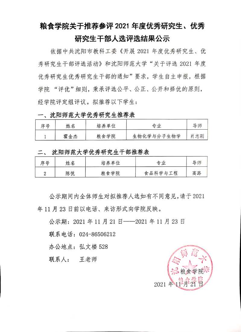 伟德国际bevictor1946关于推荐参评2021年度优秀研究生、优秀研究生干部人选评选结果公示