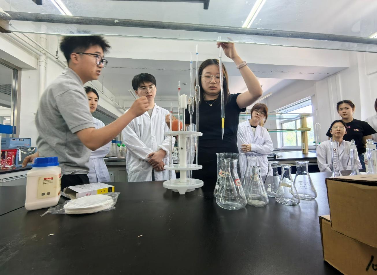 实训现场,选手们争分夺秒,精益求精。粮食容重测定、标准溶液精准滴定、粮情智能检测分析、正压式呼吸器规范操作……每一项训练均严格模拟国家级大赛标准。充裕的练习时间让选手得以反复打磨流程,在精度与效率上寻求突破,充分展现了粮院学子追求卓越的工匠精神。