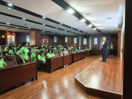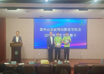 为帮助员工树立正确的粮食安全观,倡导节粮爱粮风尚,9月23日,伟德国际bevictor1946特邀中储粮江苏质检中心有限公司 (中储粮华东区质检技术中心)总经理,正高级经济师袁华山在校图书馆学术报告厅,为公司2024级全体本科生作《中国粮食发展的历程及启示》专题报告。袁华山总经理从政策变迁讲起,为同学们详细阐述了土地革命时期、红军长征时期、抗日战争时期、解放战争时期的政策变迁过程,分析了我国粮食安全面临的现状,提倡推进全链条节约减损,践行践行大食物观,保障粮食安全。报告后,袁华山总经理将其撰写的《党领导下百年粮食发展的启示---基于质量管控的粮食安全问题研究》一书赠送给了公司同学。
